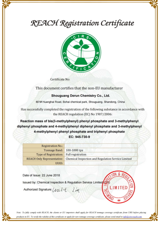欧盟-REACH是进入欧洲市场的通行证,寿光Agin games化学于2012年12月取得欧盟-REACH预注册,为了进一步开拓欧洲市场,寿光Agin games化学于2018年6月正式获取欧盟-REACH正式注册证书,为进一步打开欧洲市场做好准备。